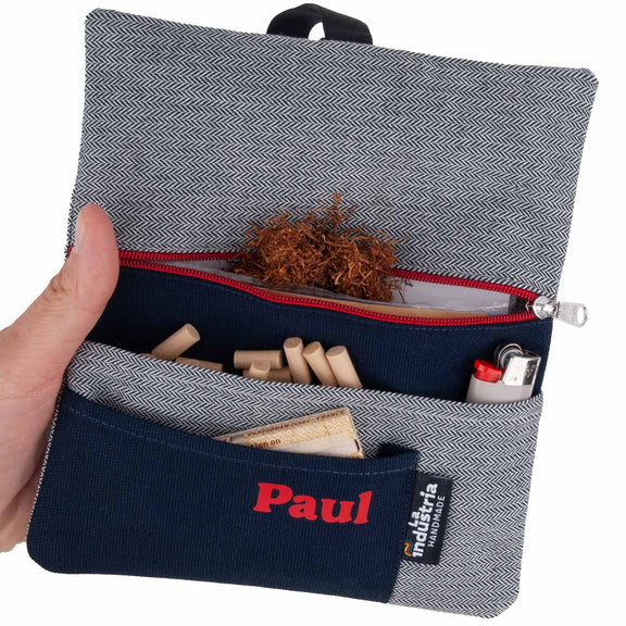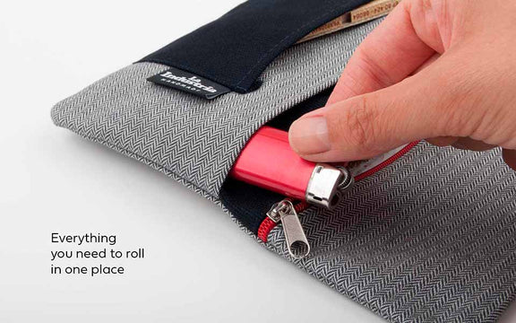Introduce el paquete de tabaco abierto en el bolsillo con cremallera para acceder fácilmente a él y mantenerlo fresco más tiempo. Además podrás guardar filtros, papel y mechero gracias a sus 3 compartimentos extra.
