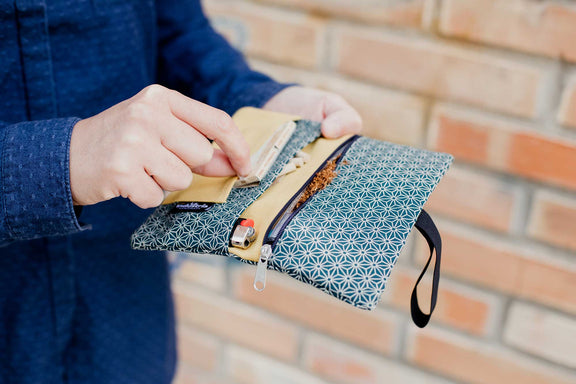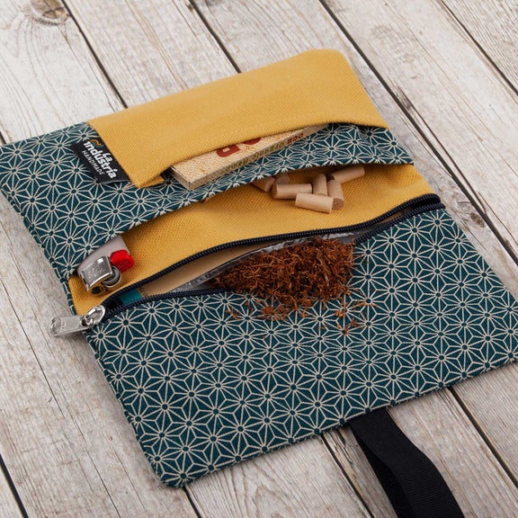 Estuche de tela con estampado japonés para el tabaco y accesorios.