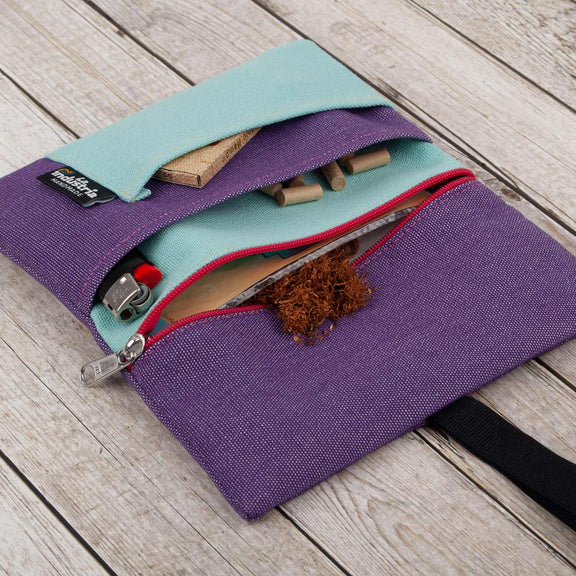 Protect your rolling tobacco and utensils with La Industria Handmade’s new liquid-repellent pouch case. Its robust fabric with a water-repellent finish repels dirt; stains and spills, making liquids form drops and roll away.