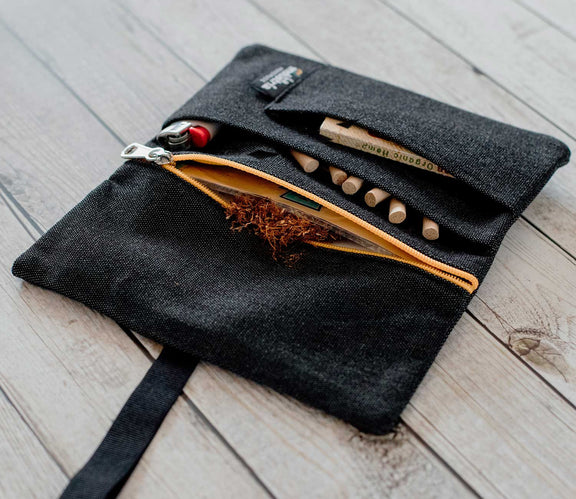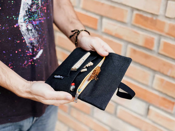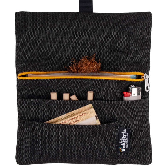 Protect your rolling tobacco and utensils with La Industria Handmade’s new water-repellent pouch case. Its robust fabric with a water-repellent finish repels dirt; stains and spills, making liquids form drops and roll away.